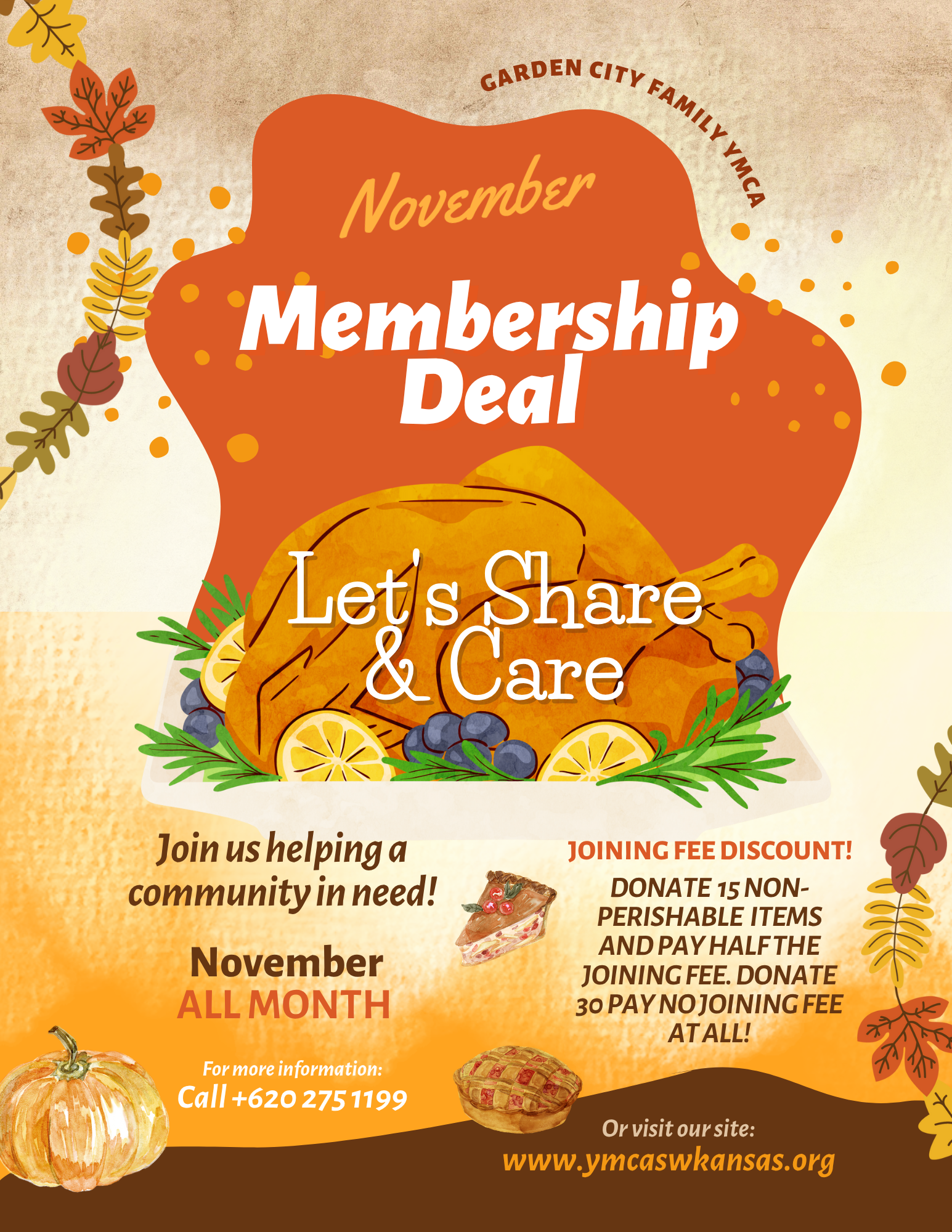 Our November Membership Deal is scrumptious! Save up to $100! Donate 15 non-perishable items and pay HALF the Joining Fee. Donate 30 non-perishable items and pay NO JOINING FEE AT ALL!